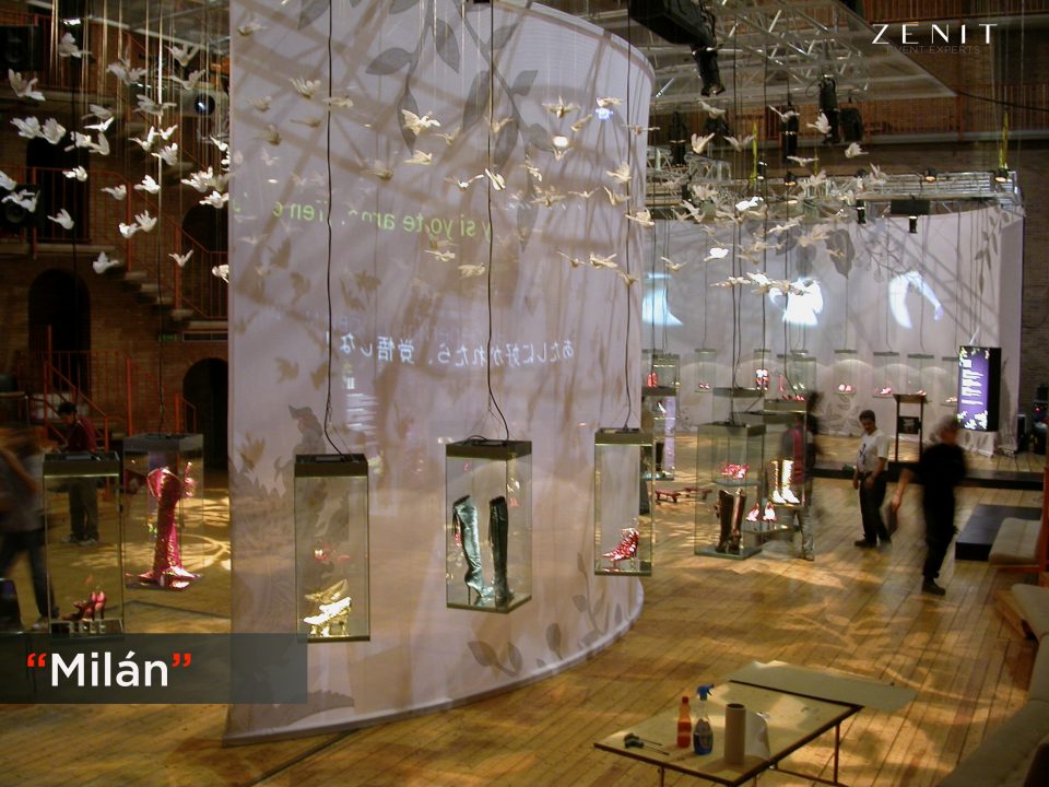 - En la misma línea del evento realizado en Tokio, os muestro el montaje que se realizó en Milán para una diseñadora de calzado española.